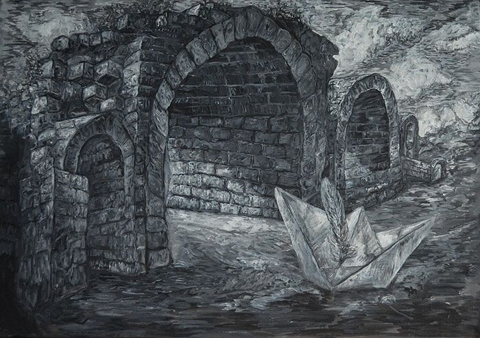 FATA-MORGANA-SCHIFF-FEDER * Öl auf Leinwand