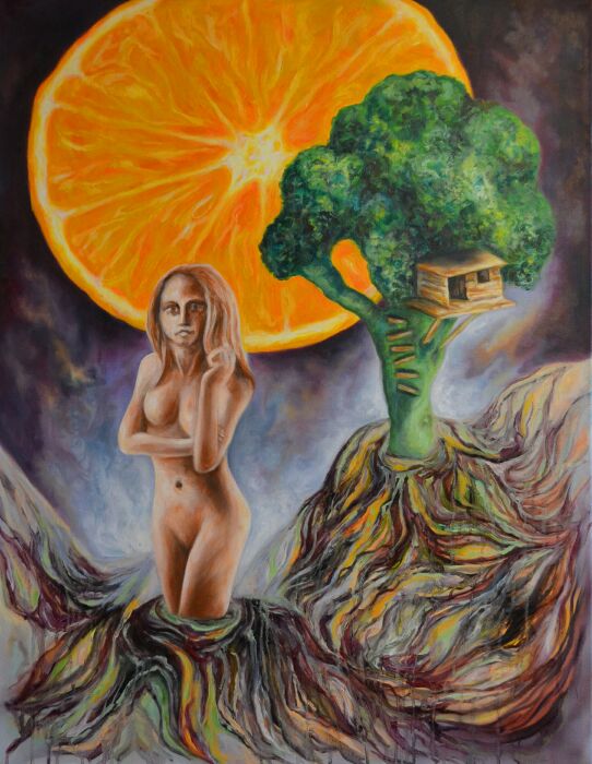 WARTEN IM GARTEN * Öl auf Leinwand